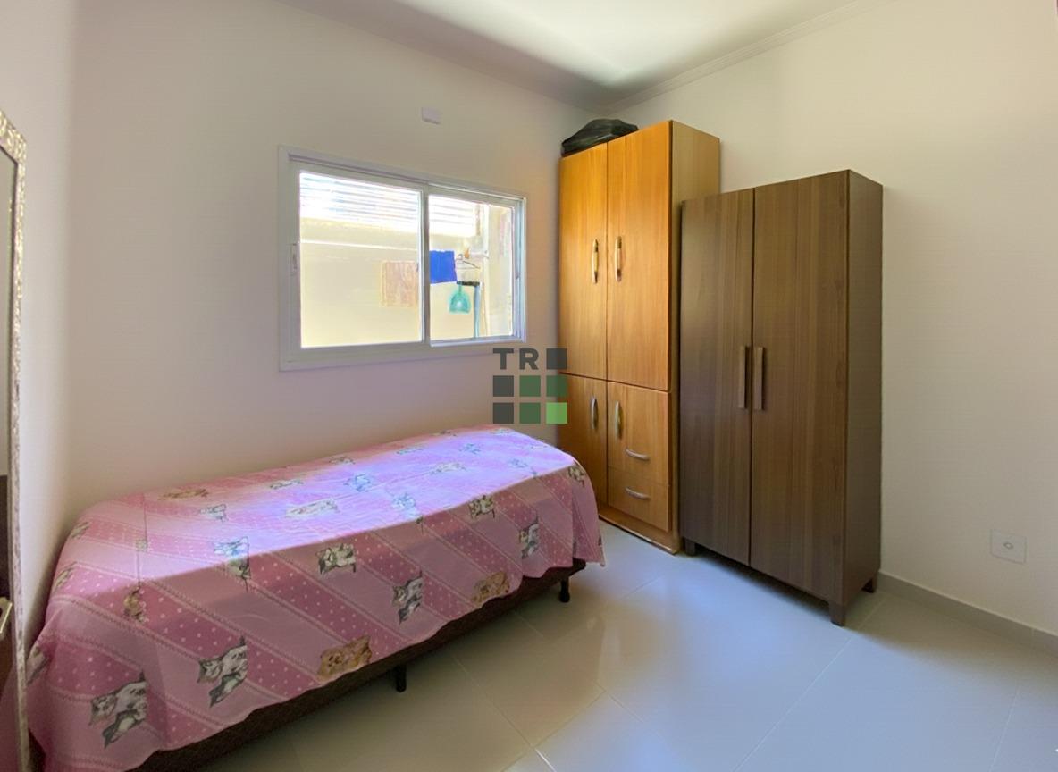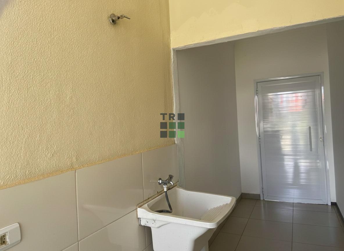 A casa oferece uma sala de estar aconchegante e independente, proporcionando mais privacidade e conforto no dia a dia, além de uma cozinha funcional, bem distribuída e prática para a rotina da família, equipada com gabinete sob a pia.