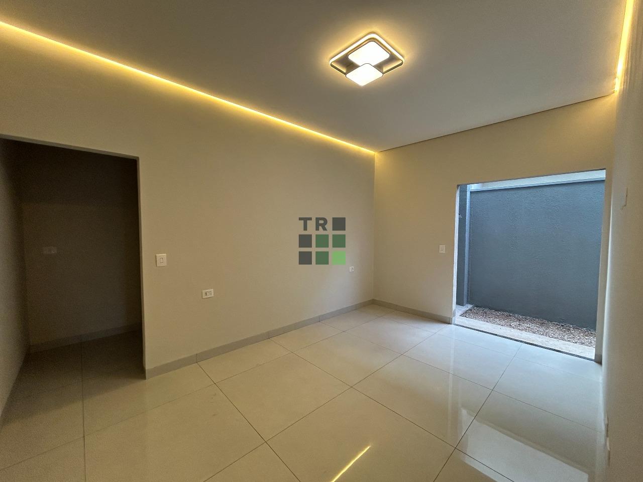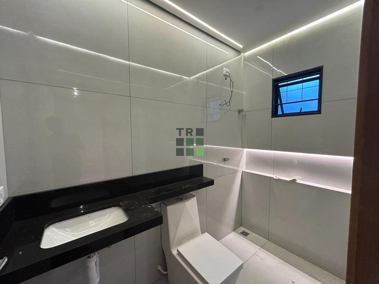 A casa conta com sala ampla, com projeto de iluminação todo em LED, proporcionando um ambiente elegante e bem iluminado. A cozinha integrada no estilo americano está pronta para receber armários planejados sob medida, garantindo funcionalidade e um visual sofisticado.