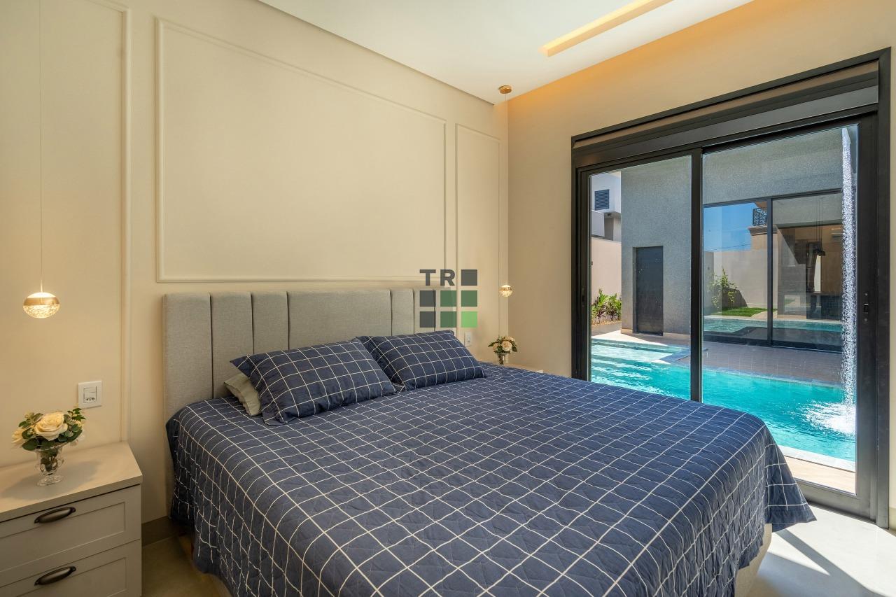 Esta residência impressiona pela sofisticação, funcionalidade e excelente aproveitamento dos espaços. A área social conta com salas de estar e jantar integradas, além de um espaço gourmet que pode funcionar de forma integrada ou isolada, com vista direta para a piscina. O ambiente é valorizado por excelente iluminação natural, projeto luminotécnico em gesso com LED embutido e painel planejado, criando uma atmosfera elegante e acolhedora. Todos os ambientes são climatizados, garantindo conforto térmico em qualquer estação do ano.