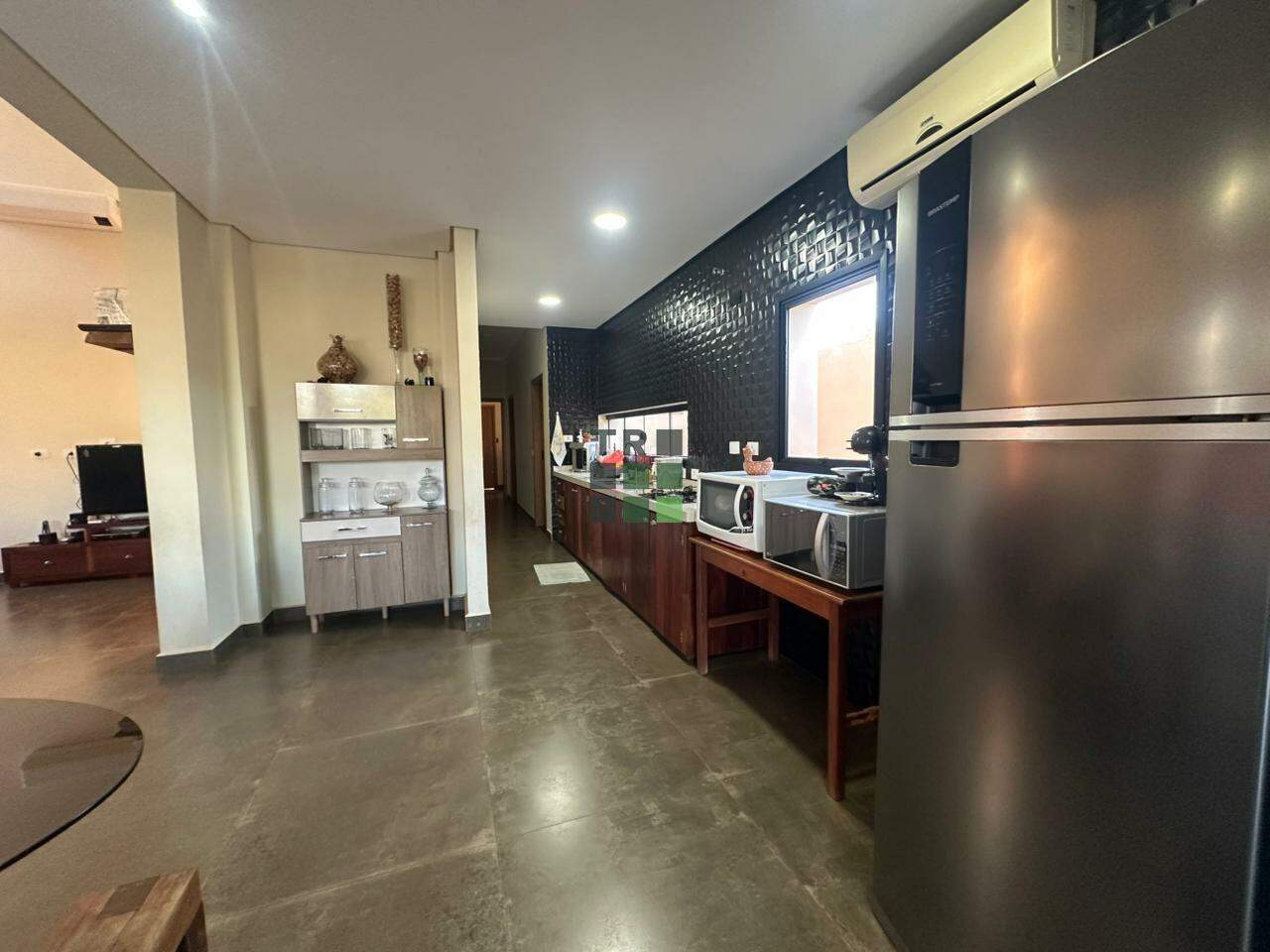 No térreo, você encontra sala de TV integrada à sala de jantar, garantindo amplitude e circulação fluida entre os ambientes. A cozinha planejada e a despensa complementam a área interna, proporcionando organização e praticidade.