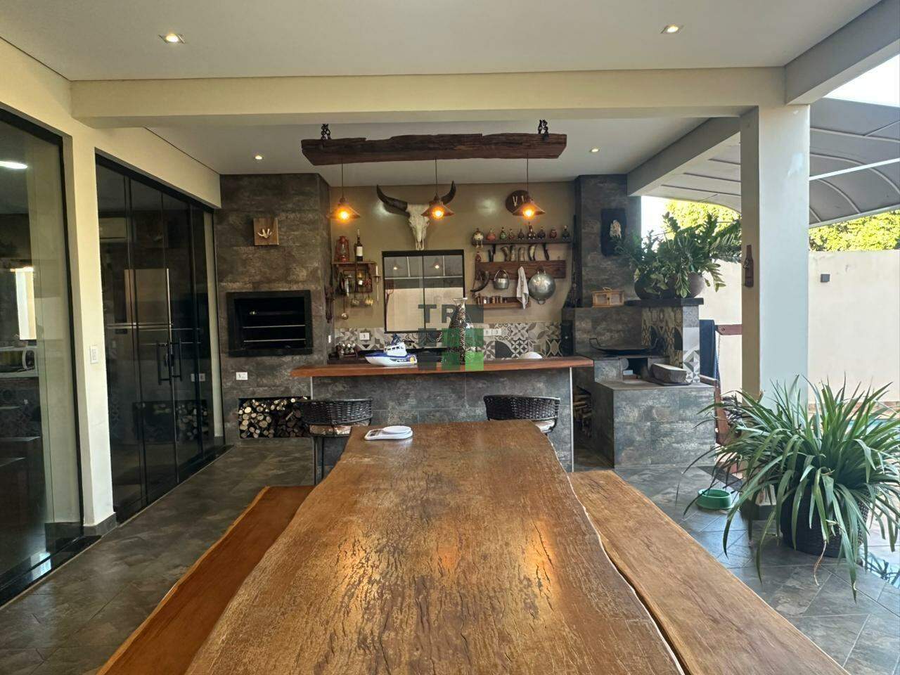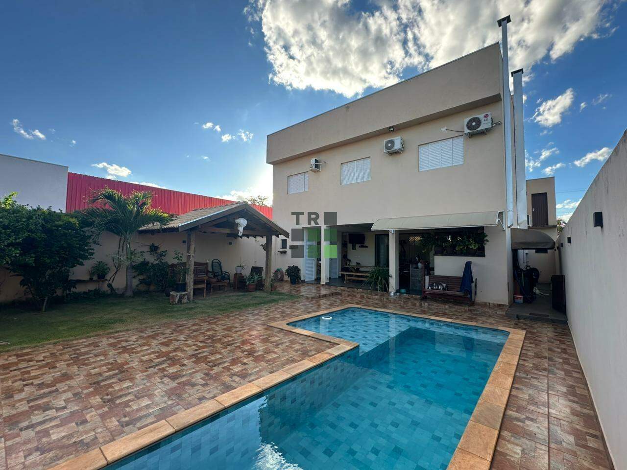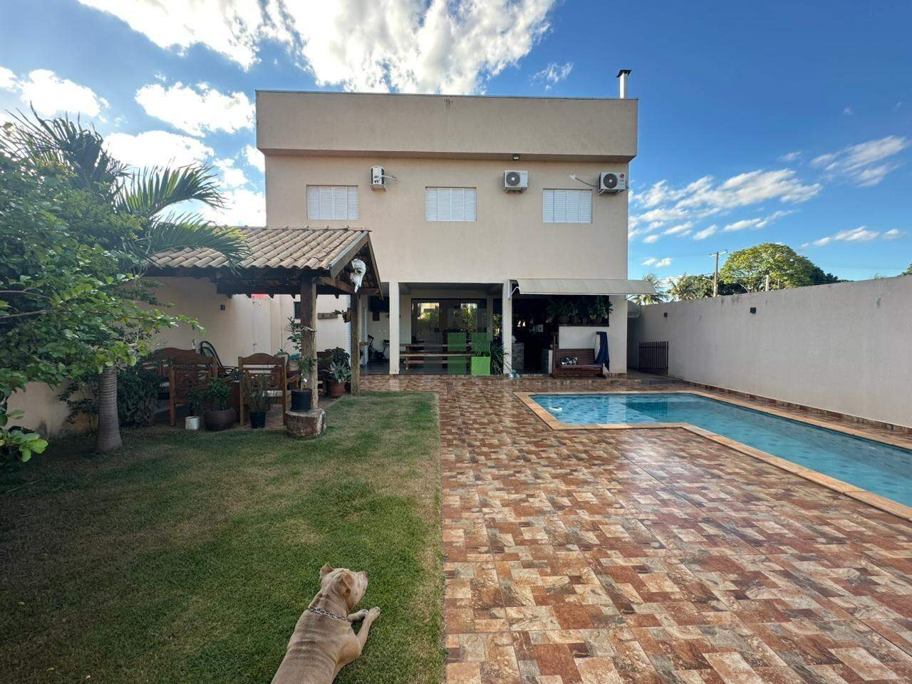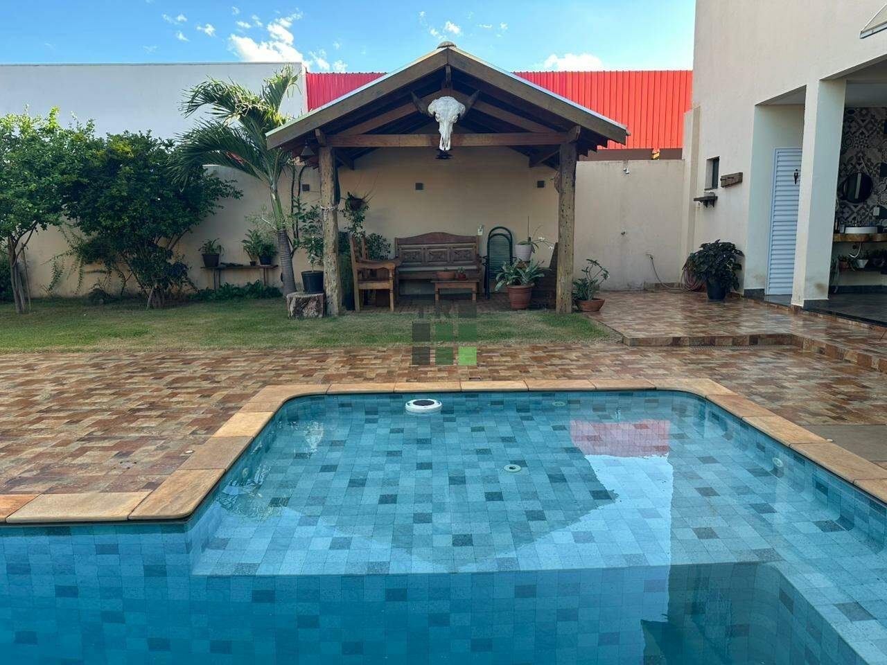 Na área externa, o imóvel conta com uma ampla área gourmet equipada com churrasqueira e forno a lenha, piscina, área coberta de convivência e 2 lavabos, oferecendo o espaço ideal para momentos de lazer e recepções.